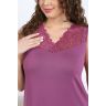 Сорочка женская из трикотажного гладкокрашенного вискозного полотна, слегка расширенная книзу, без рукавов, с кружевной вставкой – кокеткой V-образной формы. Горловина и проймы окантованы основным материалом.