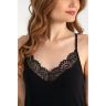 Сорочка женская полуприталенная из гладкокрашеного трикотажного вискозного полотна с отделкой кружевом, слегка расширенная книзу, без рукавов.