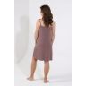 Сорочка молодежная из гладкокрашеного трикотажного вискозного полотна, на узких бретелях из окантовки, слегка расширенная книзу, с лифом «бюстье», отделанным кружевом по вырезу горловины и соединенным с основной деталью переда кружевной вставкой. Чашечки лифа присборены по нижним срезам. Для регулирования длины бретелей предусмотрены пластмассовые регуляторы. Верхний срез спинки и проймы окантованы основным материалом.