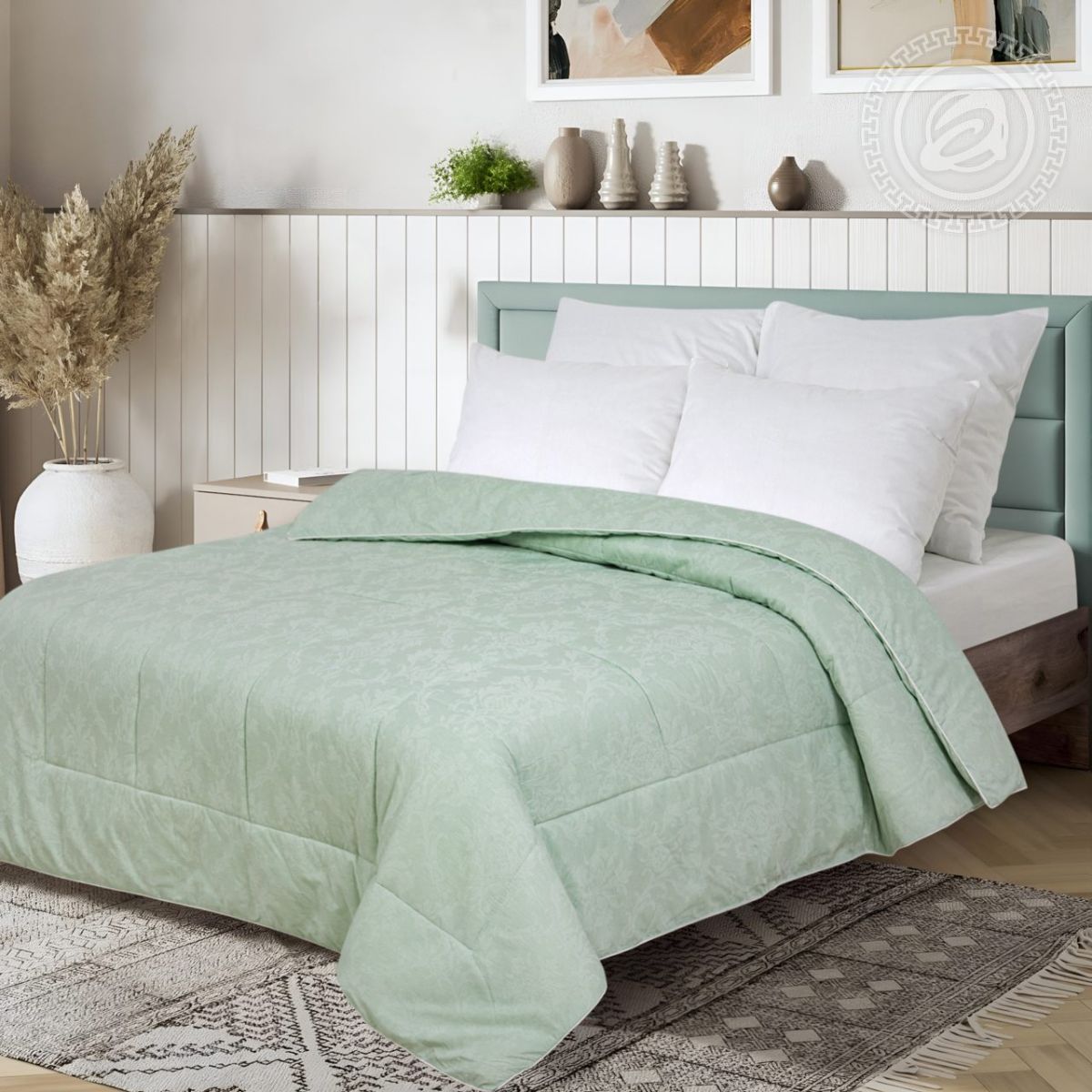 Стежка одеяла выполнена на одноигольной машине, что делает изделие объемным, воздушным и приятным для отдыха.