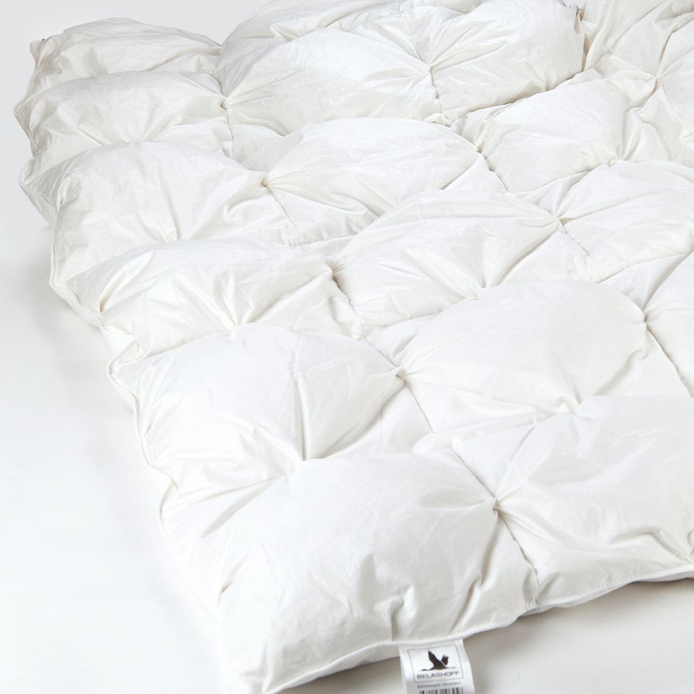 Одеяло с буфами «Бьянко» из белого гусиного пуха в белом тике (100% хлопок). Буфы, напоминающие облачка, придают дополнительную пышность и мягкость изделиям.