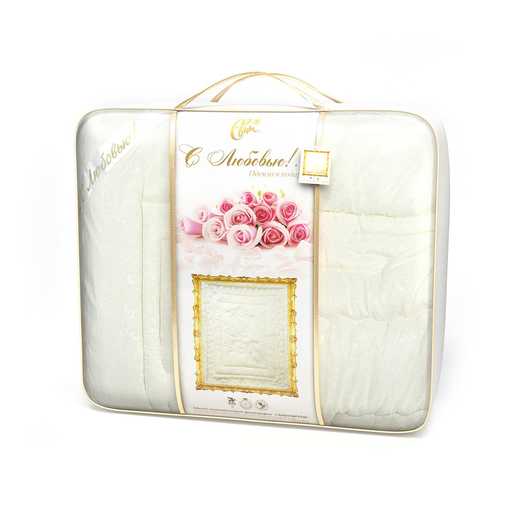 Одеяло "С Любовью" - отличный вариант подарка: нежный, пушистый искусственный лебяжий пух, чехол из качественной микрофибры - пожалуй, самой мягкой и нежной ткани на рынке, декоративная стежка в виде розы и красивая подарочная упаковка.