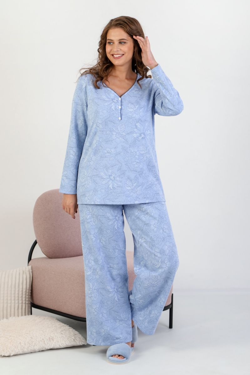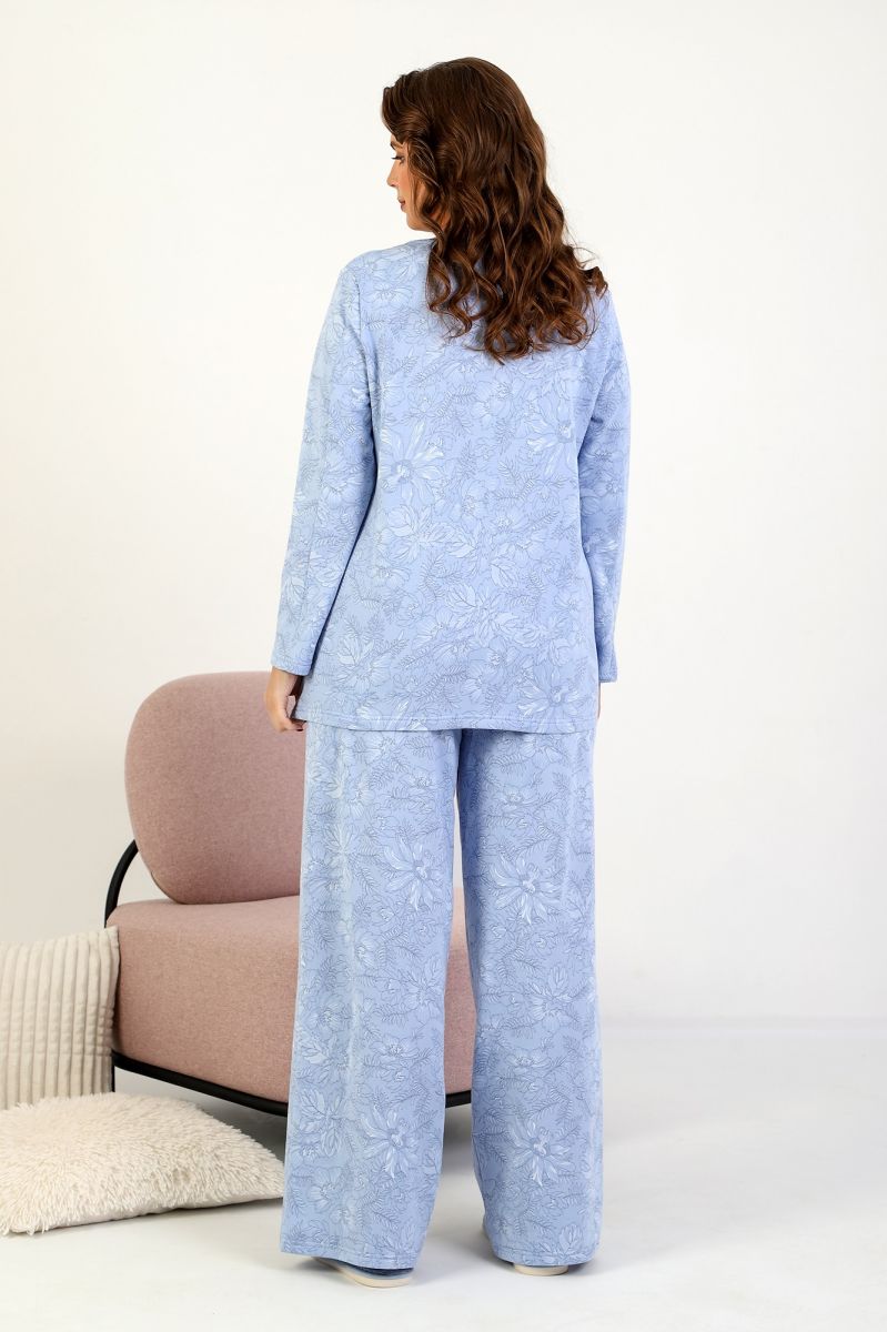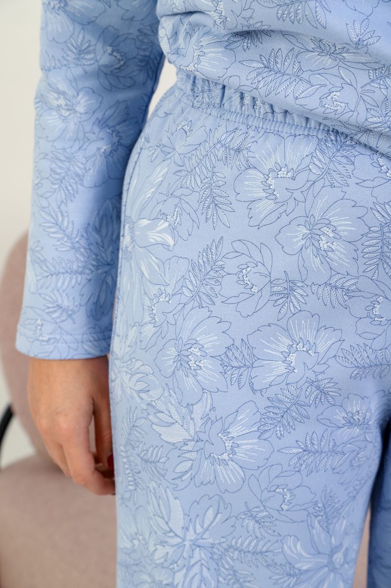 Пижама из трикотажного полотна «футер-двунитка с начесом» с набивным рисунком, состоящая из футболки и брюк.