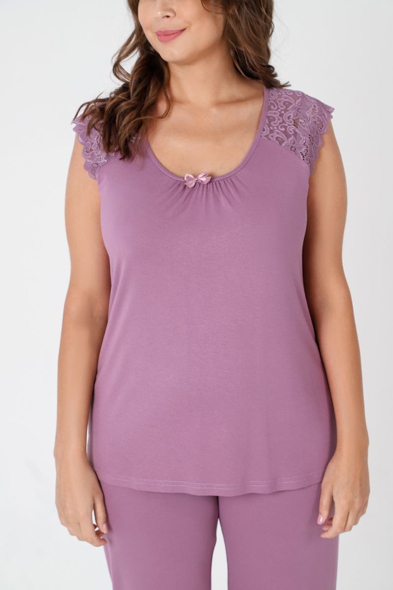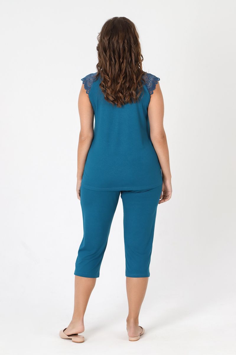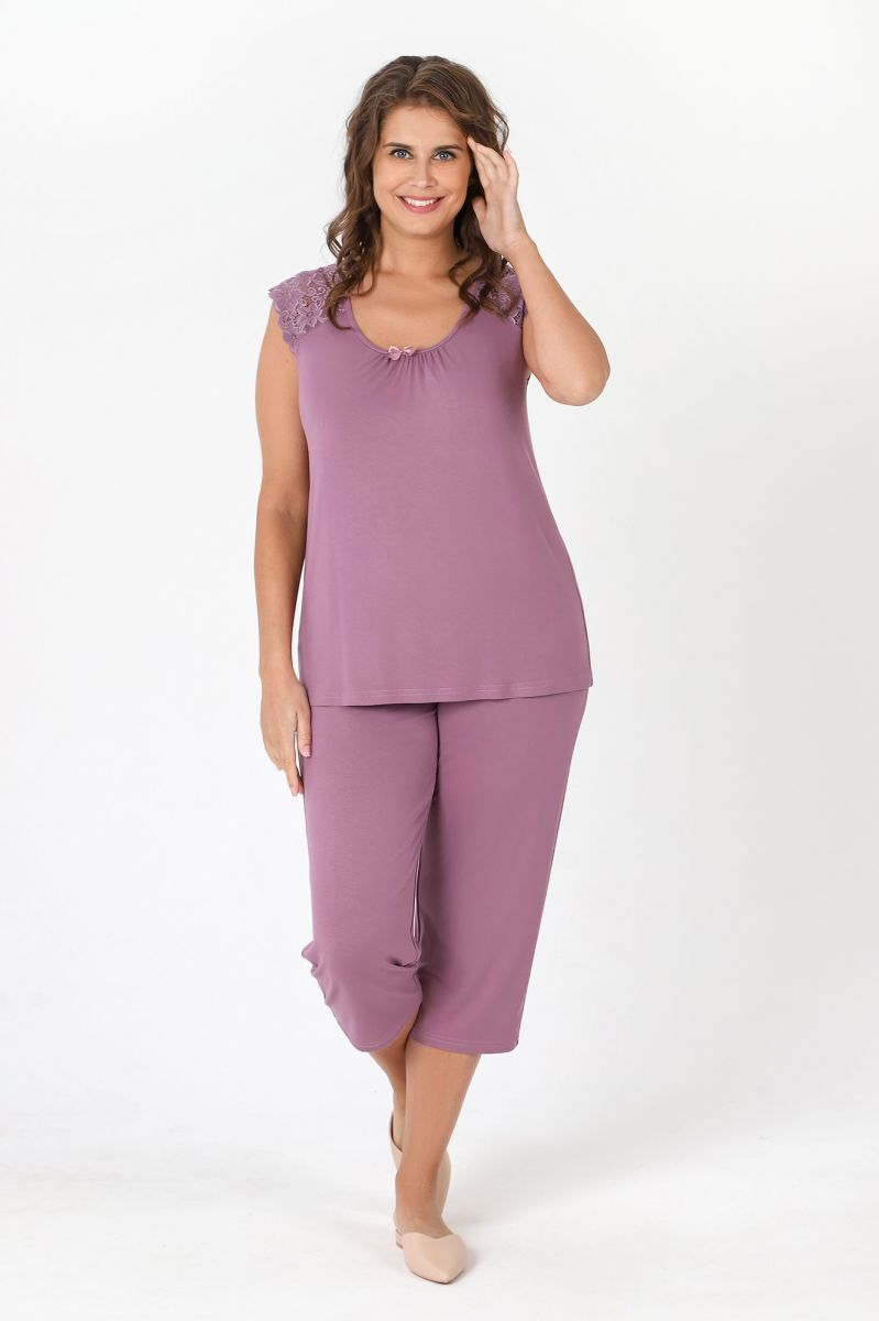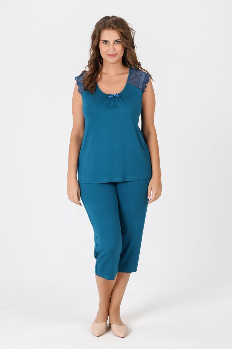 Пижама - женская из трикотажного гладкокрашенного вискозного полотна, состоящая из футболки и бридж.