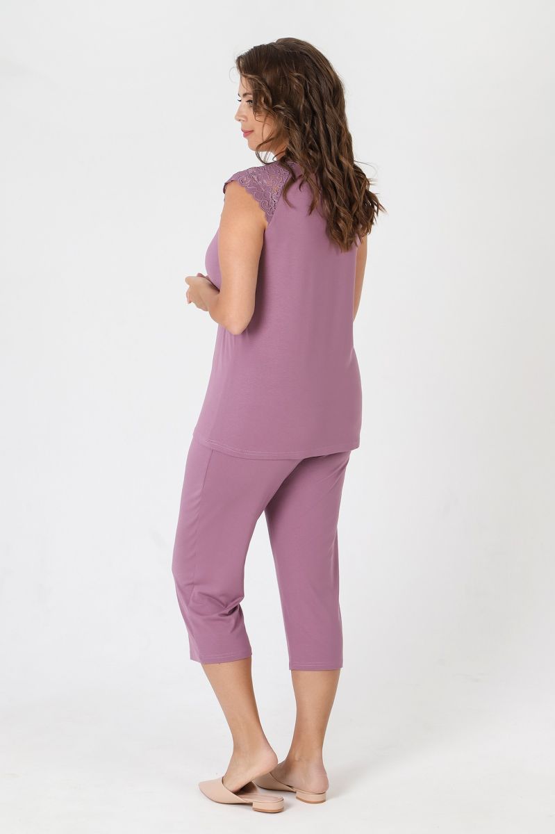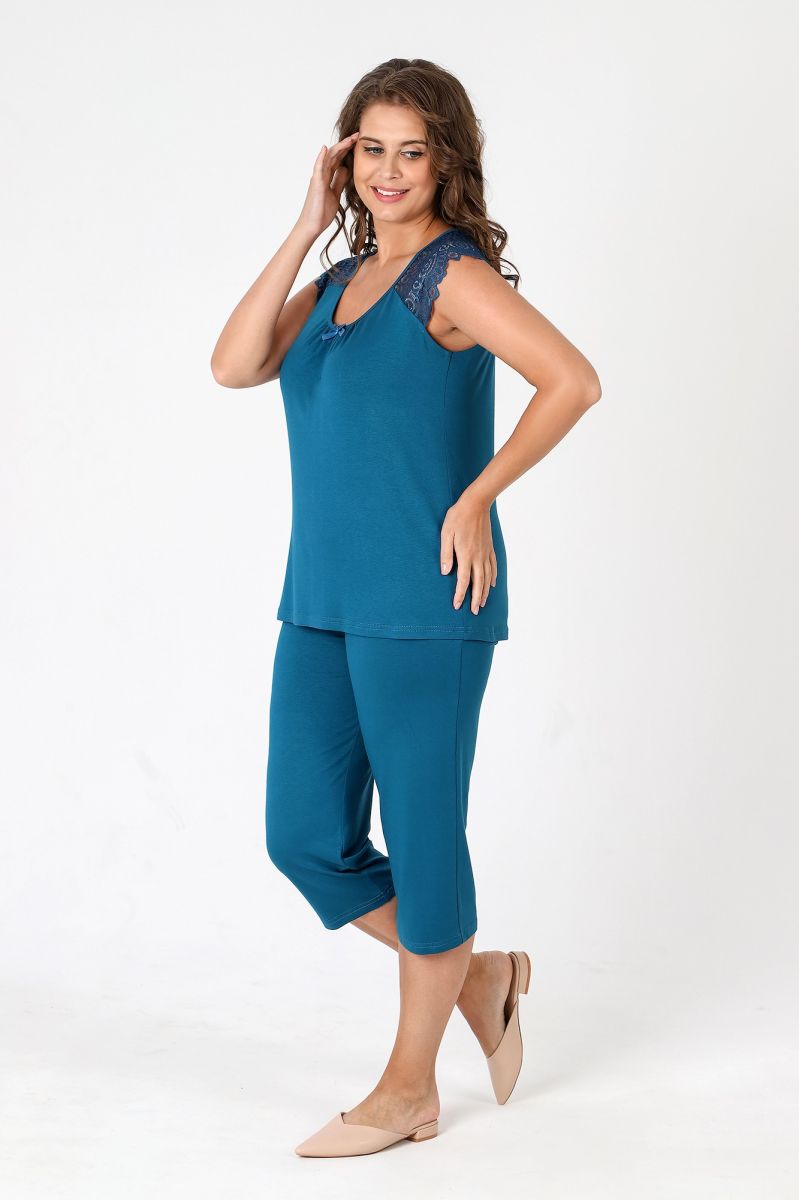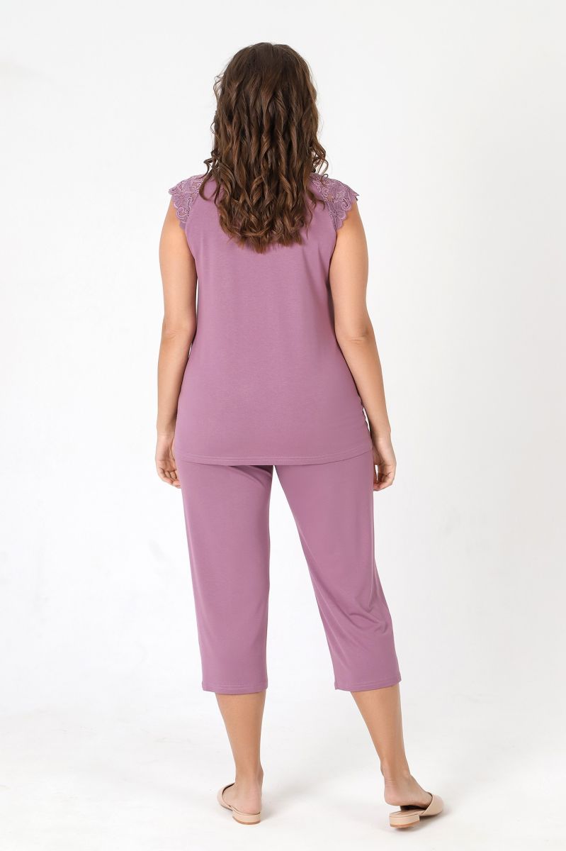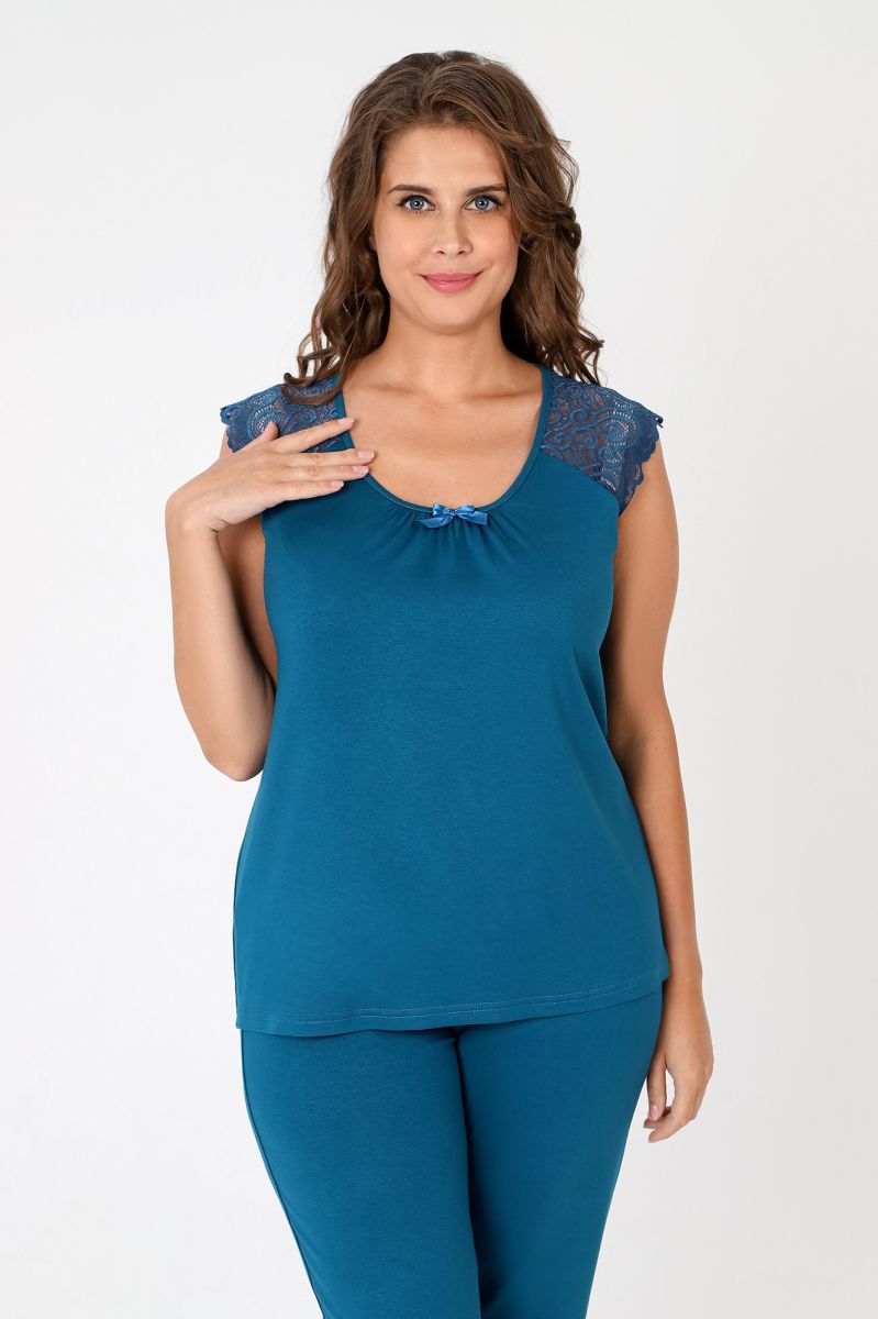 Пижама - женская из трикотажного гладкокрашенного вискозного полотна, состоящая из футболки и бридж.