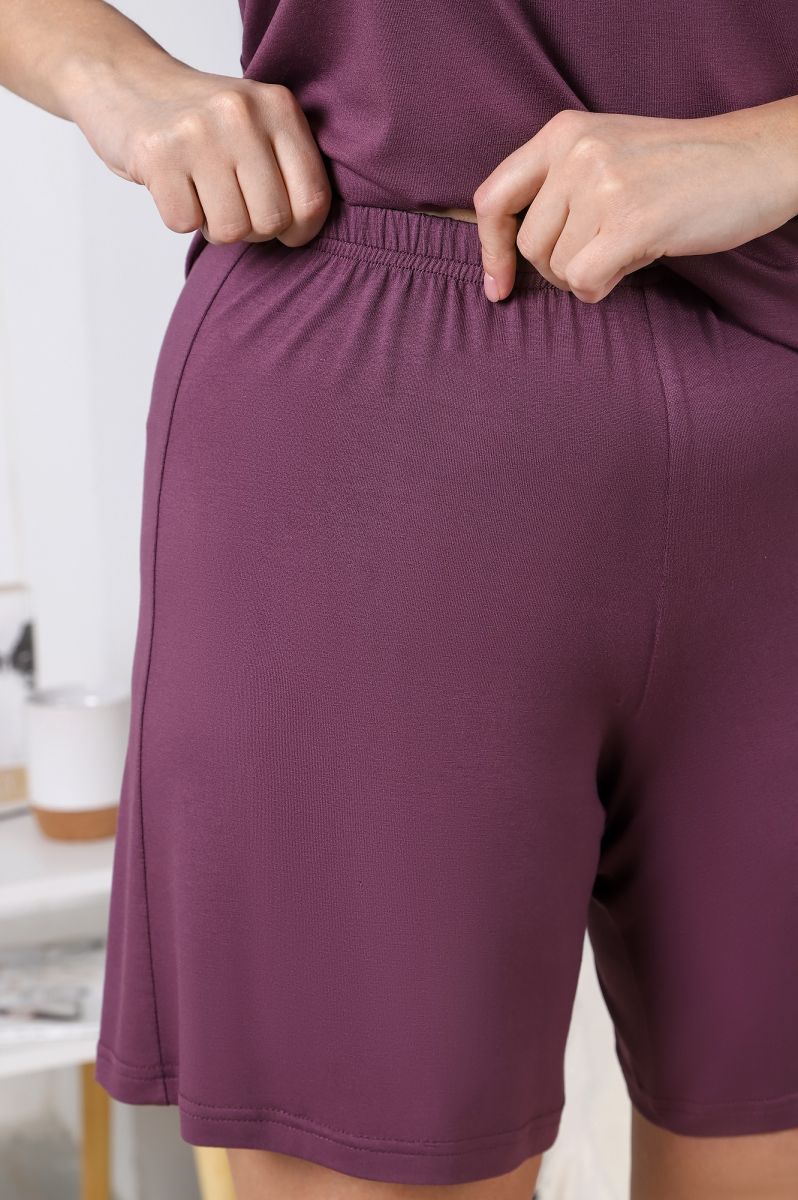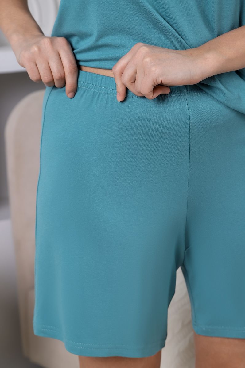 Пижама женская из гладкокрашенного вискозного полотна, состоящая из майки и шорт.
