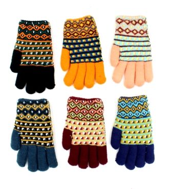 ПД705 Перчатки детск.р.15-17 (8-12 л)/двойные с флисом, геометрич. абстрак