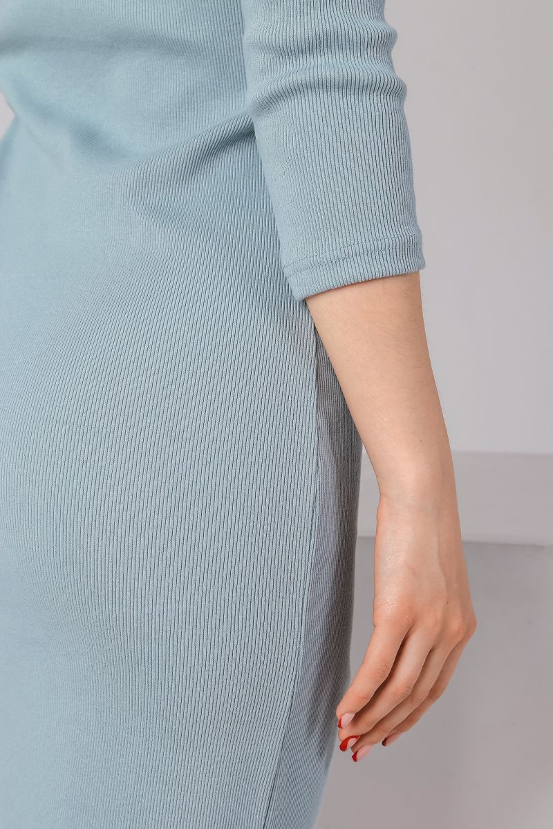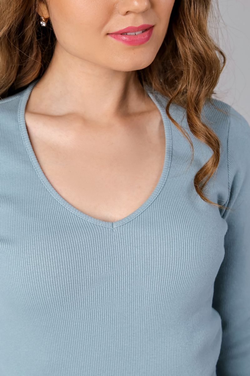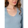 Из гладкокрашеного трикотажного полотна «кашкорсе», удлиненное, прилегающего силуэта, с длинными втачными рукавами и горловиной V-образной формы, окантованной основным материалом.