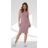Платье молодежное из гладкокрашеного фактурного трикотажного полотна «лапша», без рукавов, прилегающего силуэта, с горловиной овальной формы. На полочке параллельно боковым швам настрочена декоративная тесьма. Проймы и горловина окантованы основным материалом.