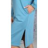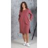 Платье женское из трикотажного полотна «футер-двунитка», прямого силуэта, с длинными втачными рукавами, горловиной овальной формы, карманами в боковых швах и принтом в верхней части переда слева, выполненным методом шелкографии. Рукава – с притачными манжетами, в левом боковом шве – разрез.