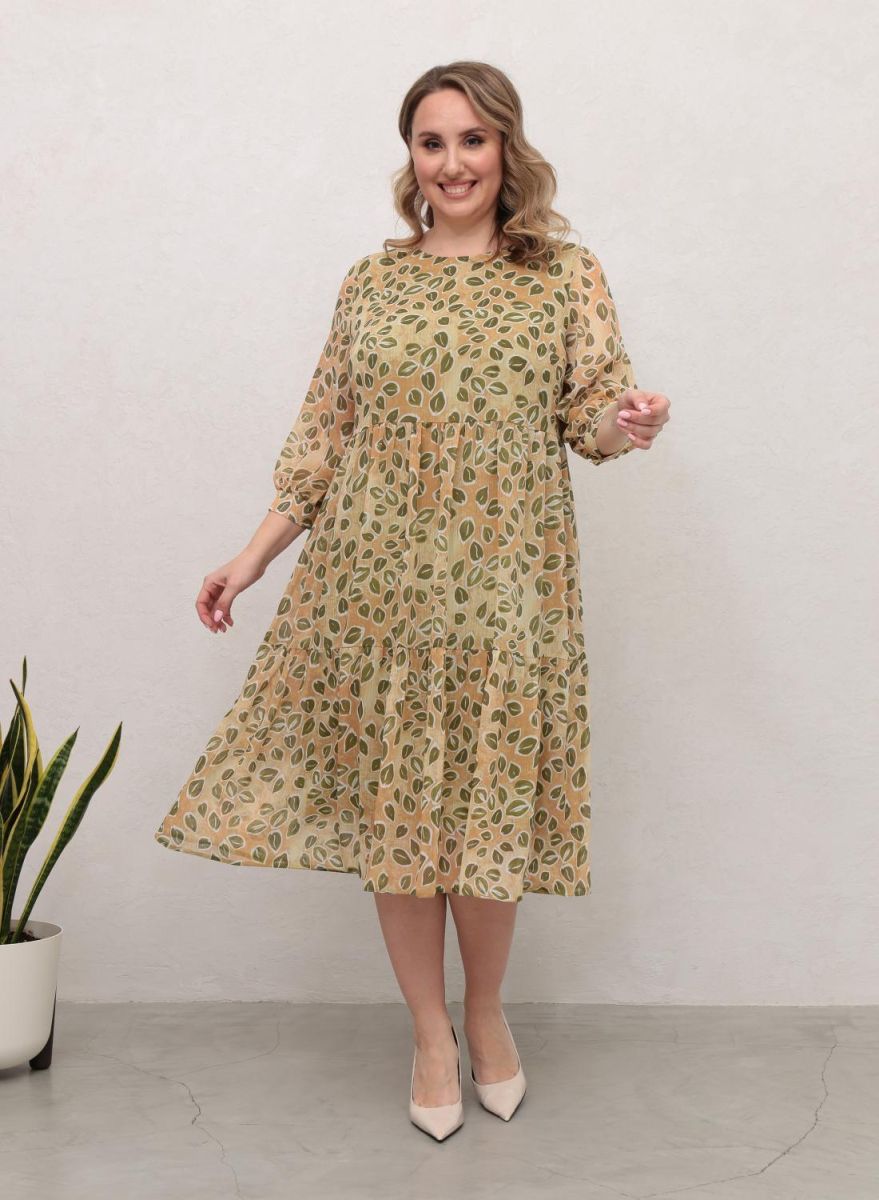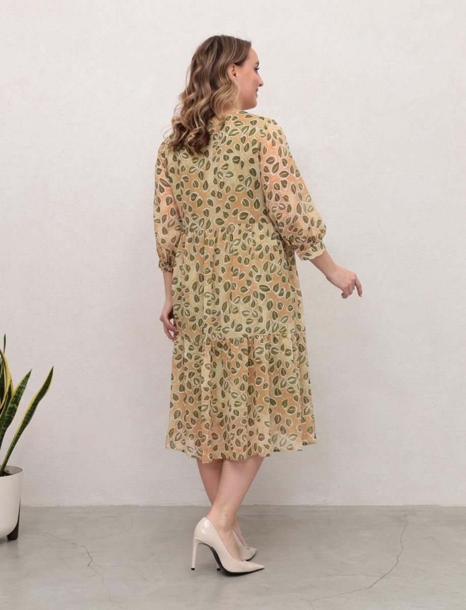 Платье с двумя ярусами. Рукава длиной 3/4, на манжете.