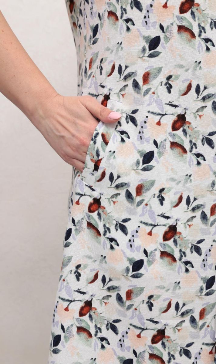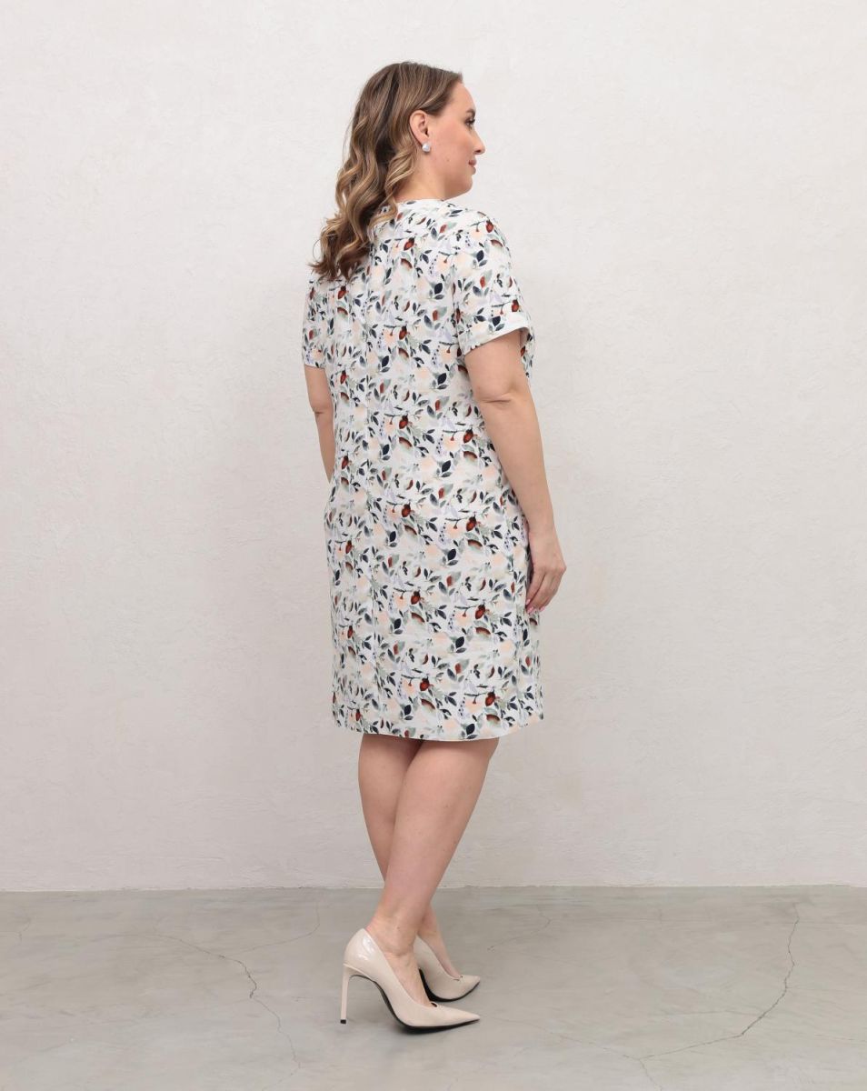 Великолепное женское платье. А превосходно оно тем, что будет незаменима в летнюю жару. Изделие полуприлегающего силуэта. Рукава короткие. Данное платье с функциональными карманами, дополненные пуговицей. По переду изделия имеется планка с не функциональными пуговицами. Простое и лаконичное платье.