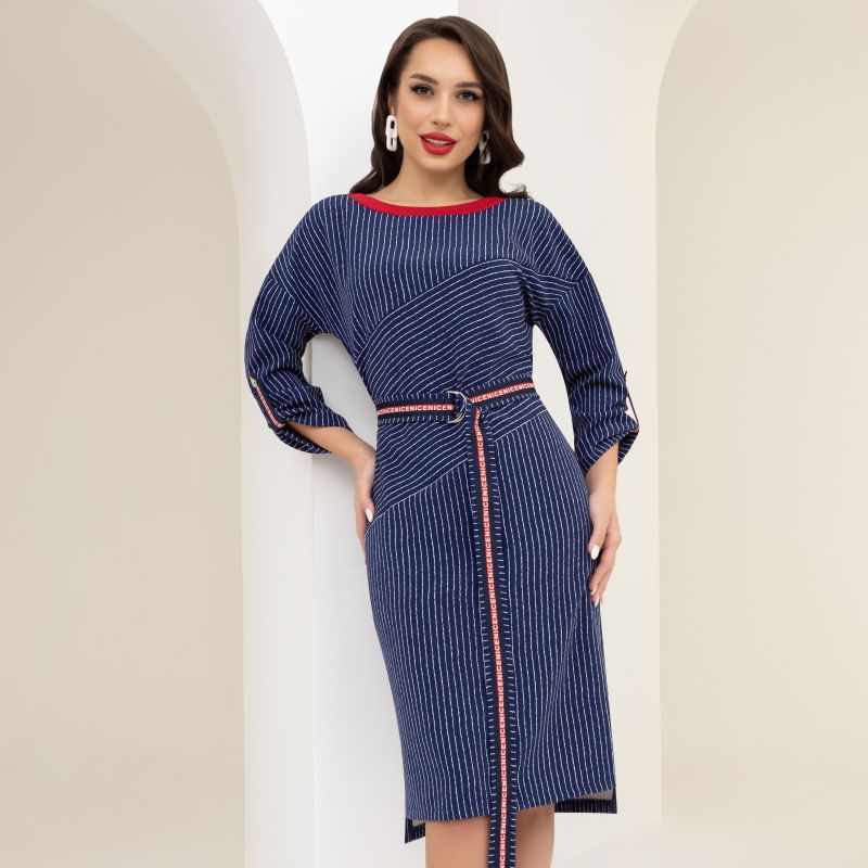 Украсьте свой день фантазийным платьем в полоску с пояском. Любимая цветовая гамма, принты, моделирующие силуэт.
