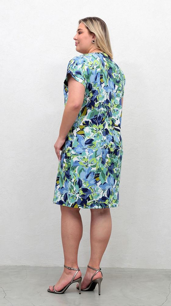 Платье прямого силуэта. Полочка с фигурными бочками. Спинка цельная. Карманы в боковых швах. V-образная горловина. На рукавах манжета.