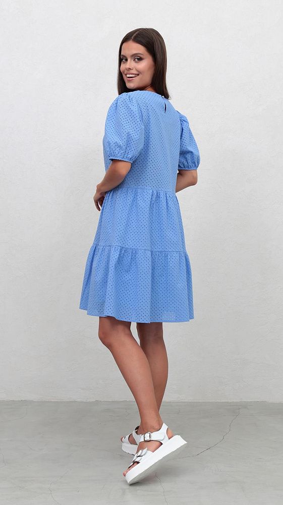 Платье свободного силуэта с двумя ярусами. Горловина лодочка. Рукава втачные, сборкой по окату и низу на резинке.