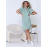Платье женское из футера двунитки с лайкрой свободного кроя, без рукавов с удлиненным плечом, с капюшоном, с накладным карманом - "кенгуру".