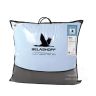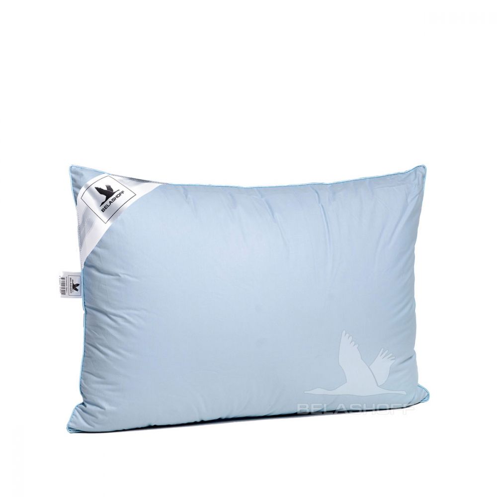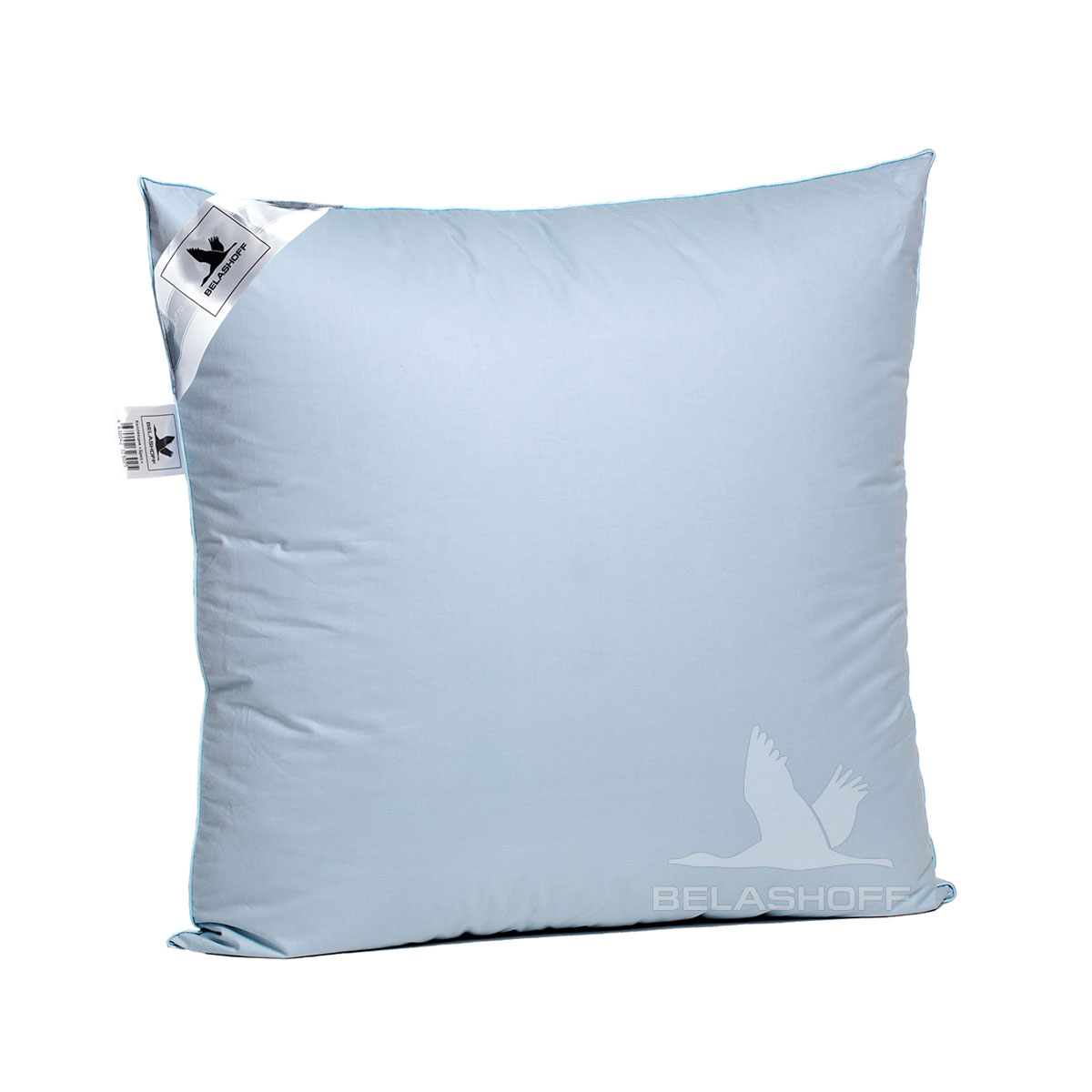 Подушки коллекции «Бриз» упругие, но при этом достаточно мягкие. Наполнены серым гусиным пухом, легко взбиваются, не теряют объем. Выполнены в ткани тик (хлопок 100%) приглушенного голубого оттенка.