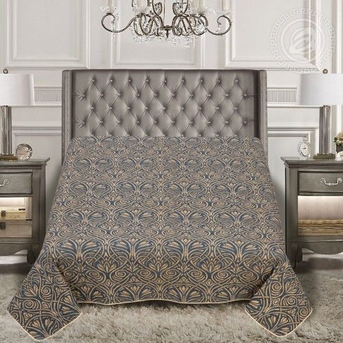 «Мадрид» - элитарный дизайн, который олицетворяет элегантность и шик. Покрывало с лаконичным и изящным узором в виде золотых вензелей украсит интерьер как в классическом, так и современном стиле, добавив нотки роскоши и утонченности. «Мадрид» — это чудесный выбор для эффектного обновления спальни.