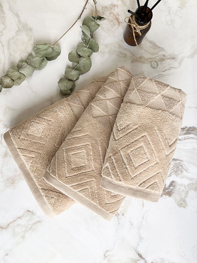Благодаря составу из 100% хлопка, полотенца обладают хорошей гигроскопичностью.
