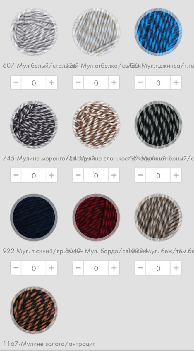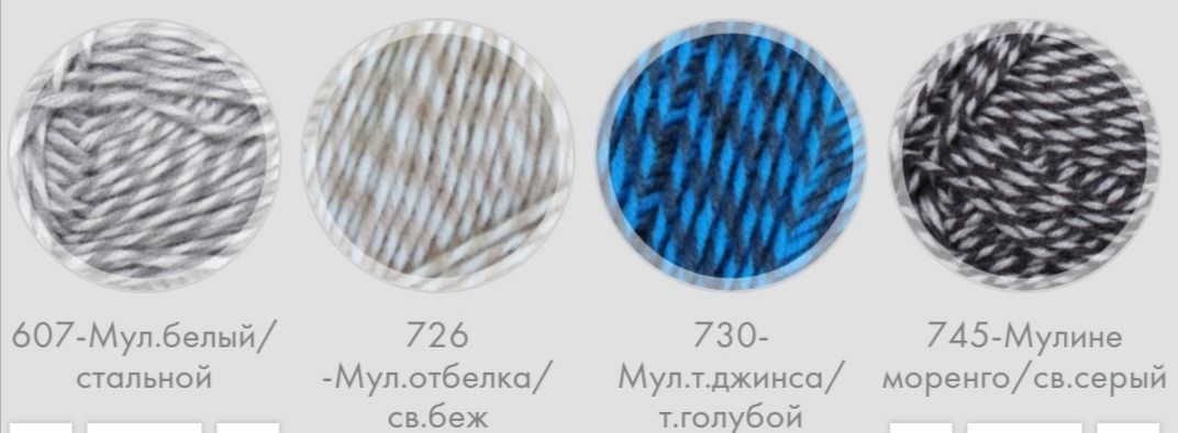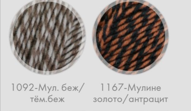 В пряже. «Классическое мулине» мы соединили нити двух близких оттенков, создав цветовой ряд из 13 цветосочетаний (соединений).