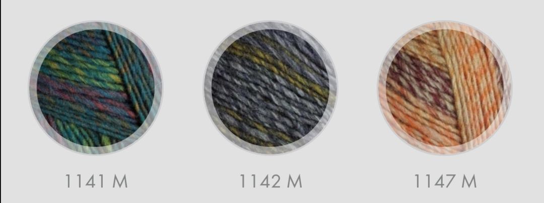 Здесь преобладает меланжевая цветовая гамма, оттенки нитей слегка приглушенные. При этом пряжу отличает легкая пушистость. Все это в целом позволяет рассматривать Мультиколоровая_ровница как интересный вариант для вязаных пальто, кардиганов, джемперов, пуловеров. Не говоря уже о мелких предметах одежды: шапочках, варежках, митенках, носках, шарфов, снудов.