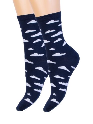 Женские носки с очаровательным рисунком облаков. Модель связана из натурального гребенного хлопка, комфортная, тактильно приятная, подходит для повседневной носки. Милые носочки подчернкут ваш стиль и добавят легкости вашему образу.