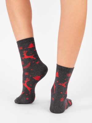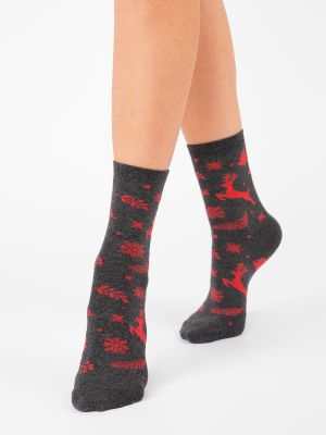 Новогодние женские носки. Мягкая основа – натуральный гребенной хлопок, который обеспечит максимальный комфорт и уют на протяжении дня. Эластичная резинка надёжно фиксирует изделие, не сдавливая при этом ногу. Яркие носки с рисунком оленей сделают ваше настроение особенно праздничным и станут отличным подарком для близких, который подчеркнет вашу заботу и любовь.