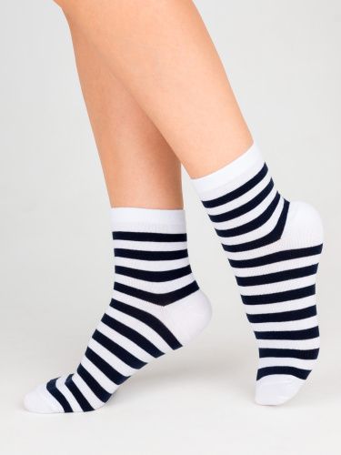 Женские носки с контрастной полоской. Натуральному гребенному хлопку в составе свойственны мягкость, удобство и эластичность, что придаст уверенности и лёгкости каждому шагу.