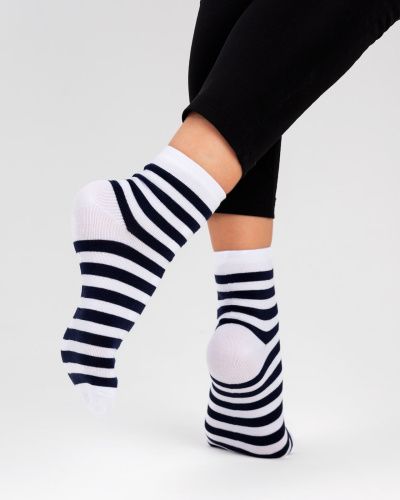 Модный полосатый рисунок, выполненный в классических белом и чёрном цветах, позволит сочетать носки с любым нарядом и обувью.