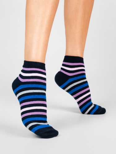 Женские полосатые носки. Натуральный гребенной хлопок в составе даёт гарантию изделию быть максимально комфортным и позволит ногам «дышать», тем самым препятствуя потоотделению и раздражению кожи. Актуальный на все времена полосатый рисунок добавит ярких акцентов в гардероб и поднимет ваше настроение.