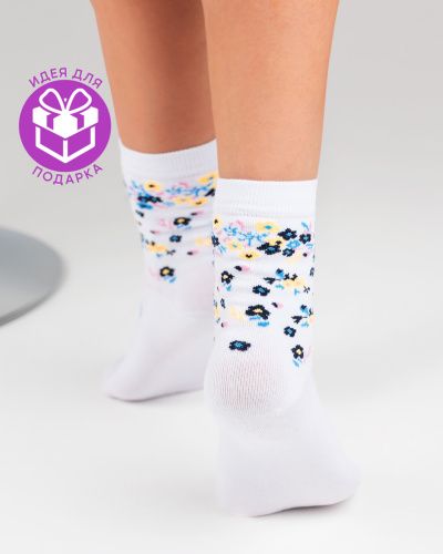 Женские носки с цветочным рисунком. Очаровательная модель из натурального хлопка подарит ножкам ощущения мягкости и уюта. Эластичная резинка фиксирует посадку изделия и не сдавливает ногу. Гармоничное сочетание цветов не оставит равнодушной ни одну обладательницу.