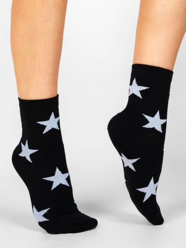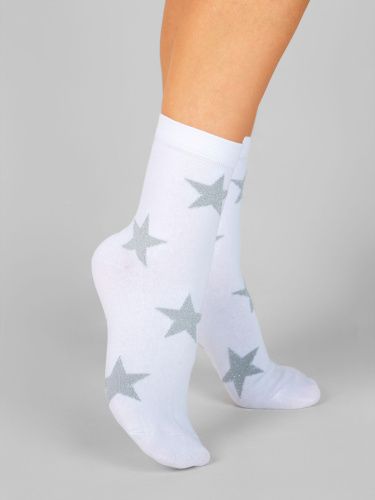 Женские носки из натурального хлопка – базовая вещь в любом гардеробе. Модель прекрасно сочетается с разными стилями в одежде и подходит для повседневной носки. Узоры в форме звезды люрекса добавляют изделию оригинальности и блеска. В таких носочках вы точно не останетесь незамеченными.