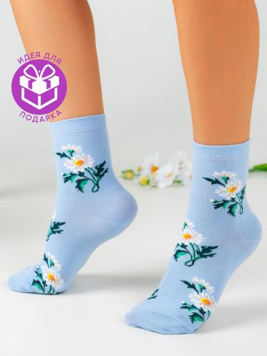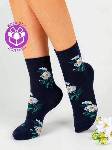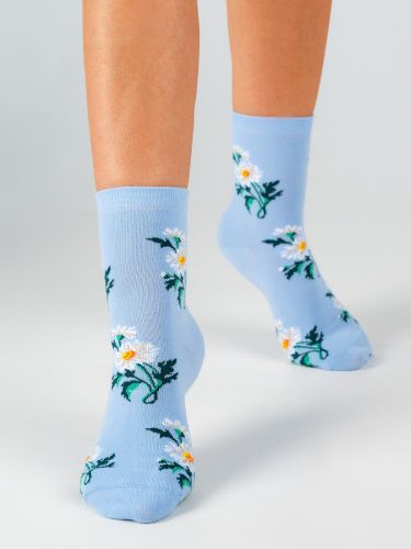 Носки с изображением цветов ромашки - комфортная и легкая модель из натурального гребенного хлопка для повседневной носки. Носки прекрасно сочетаются с разными стилями в одежде и дополнят ваш образ.