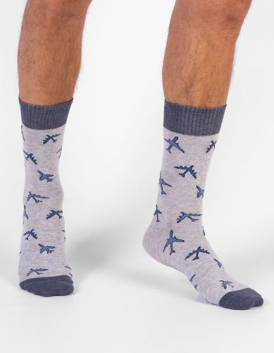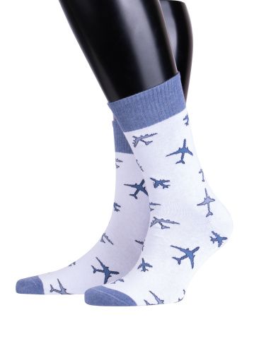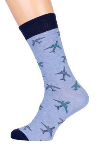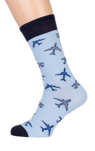 Мужские демисезонные носки. Изделие связано из натурального гребенного хлопка, комфортное, мягкое, воздухопроницаемое. Носки с рисунками самолетов, которые гармонично сочетаются с бортом и мыском изделия. Лаконичная модель дополнит ваш образ.
