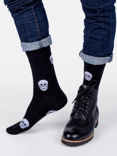 Демисезонные мужские носки с черепами в двух цветовых решениях. Модель подходит как для тематической вечеринки, так и просто для настроения. В мягких и дышащих носках ногам комфортно на протяжении всего дня. Синтетические нити в составе добавляют изделию прочности и износостойкости.