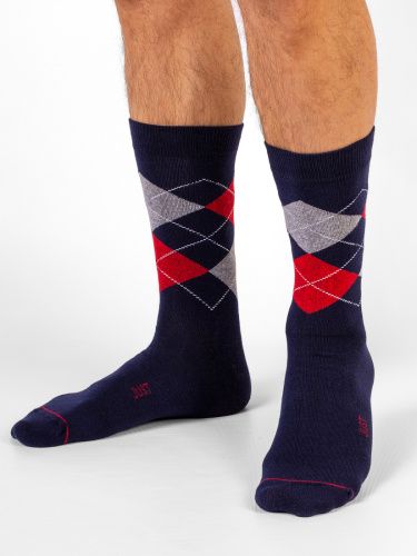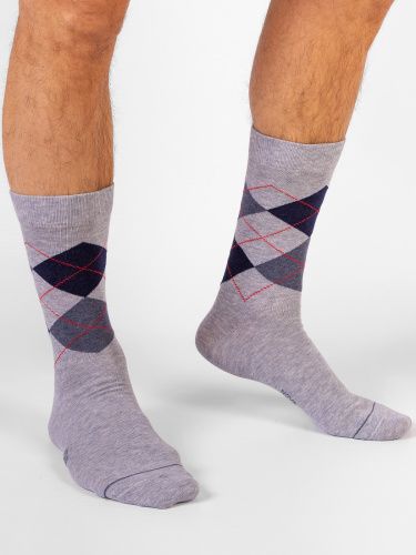 Демисезонные мужские носки с геометрическими рисунками. Изделие связано из натурального гребенного хлопка. Комфортная, мягкая модель – отличный вариант для повседневной носки. Носки с лаконичным рисунком сочетается с разными образами, как с классическими, так и с более неформальными.