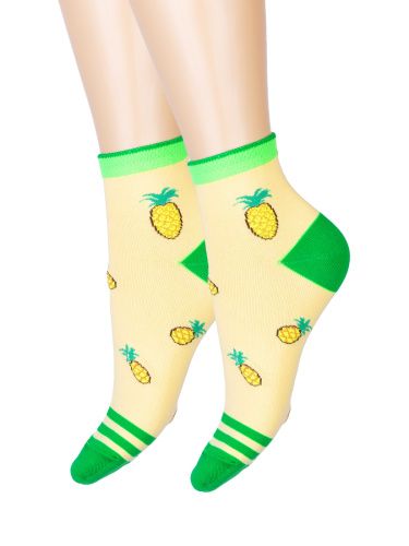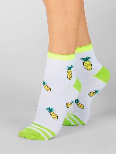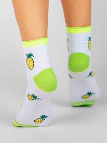 Женские носки с задорным рисунком – аппетитным ананасом в сочетании с яркими полосками. Такие носки с принтом невозможно не заметить!