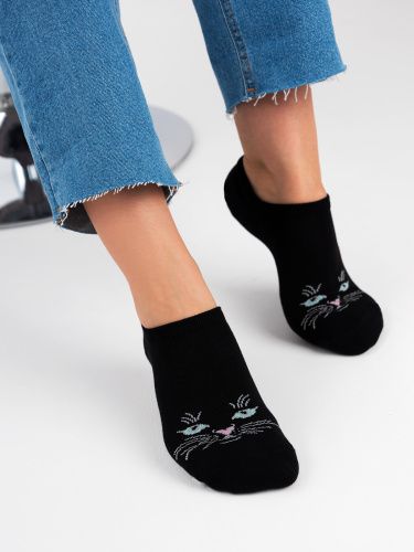 Ультракороткие носки из хлопка с рисунком «Кошка», удобная специальная форма, позволяет оставаться невидимыми в обуви, подходят, как для занятия спортом, так и для повседневной носки.