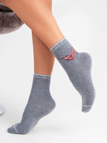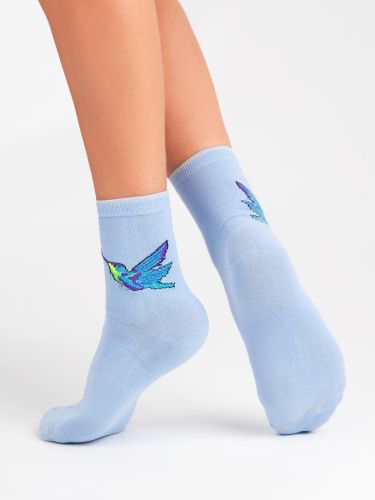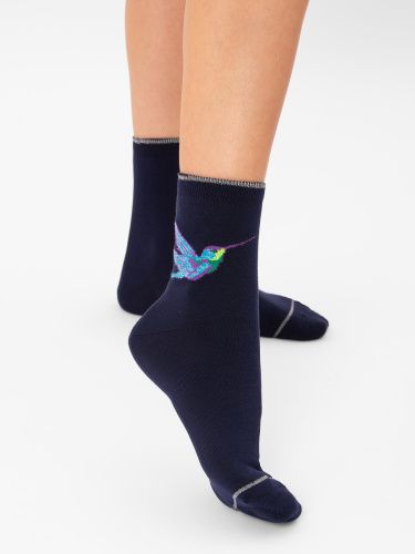 Очаровательные женские носки с рисунком колибри. Высокое содержание натурального хлопка в составе изделия придаст лёгкость и комфорт ножкам на протяжении всего дня.