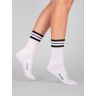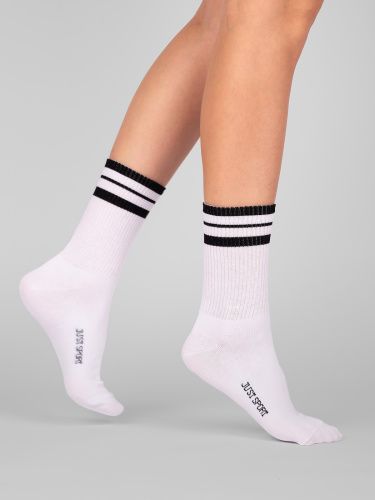 Высокая удобная резинка, украшенная яркими цветными полосками, деликатно облегает ногу и не доставляет дискомфорт.
