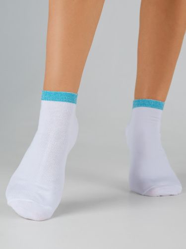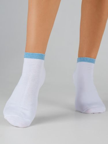 Женские укороченные носки из натурального хлопка – базовая вещь в каждом гардеробе. Нить люрекс красиво подчеркивает борт носка, придаёт изделию оригинальности и блеска. Модель подходит для повседневной носки, в ней комфортно в течение всего дня.