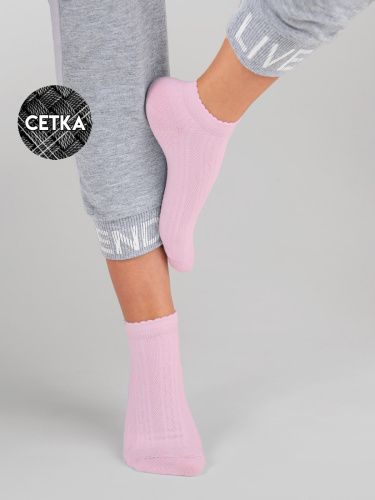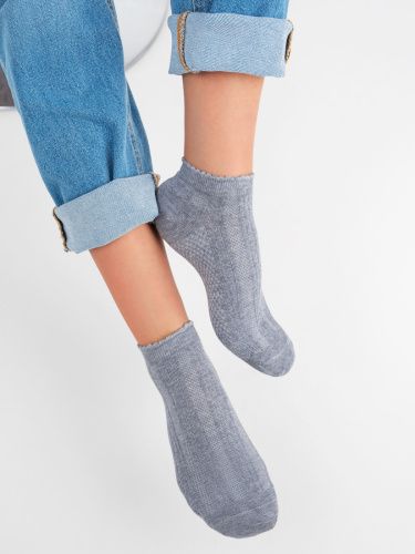 Укороченные женские носки с усиленным рельефным эффектом. Изящный борт с мелким пикотом. У модели натуральная основа — высококачественный гребенной хлопок, за счёт чего ногам будет комфортно и уютно на протяжении дня. Синтетические нити в составе отвечают за долговечность, эластичность и устойчивость изделия к истиранию.