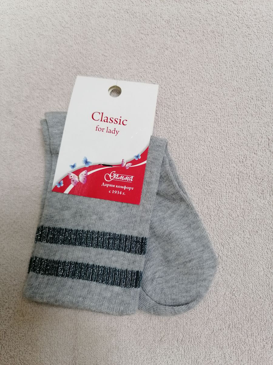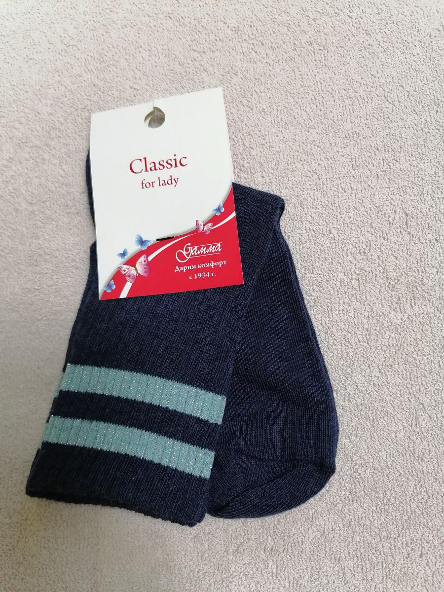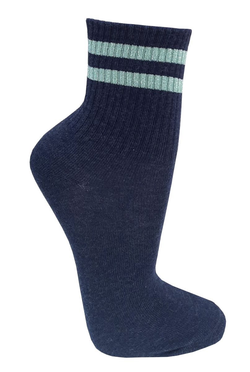 Носки женские в стиле "спорт-шик" с полосками из люрекса на борте. В упаковке - 10 пар в одном цвете.