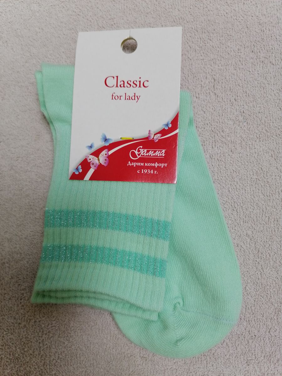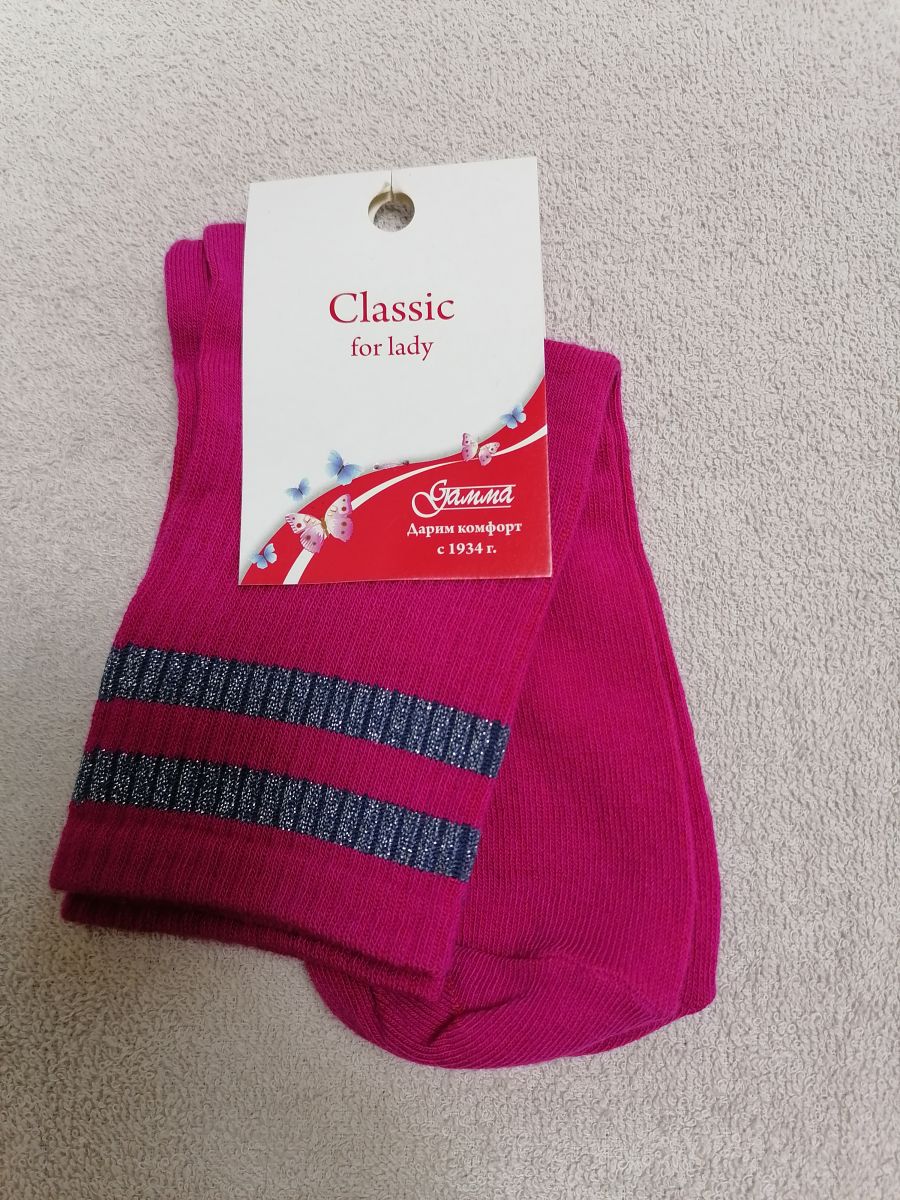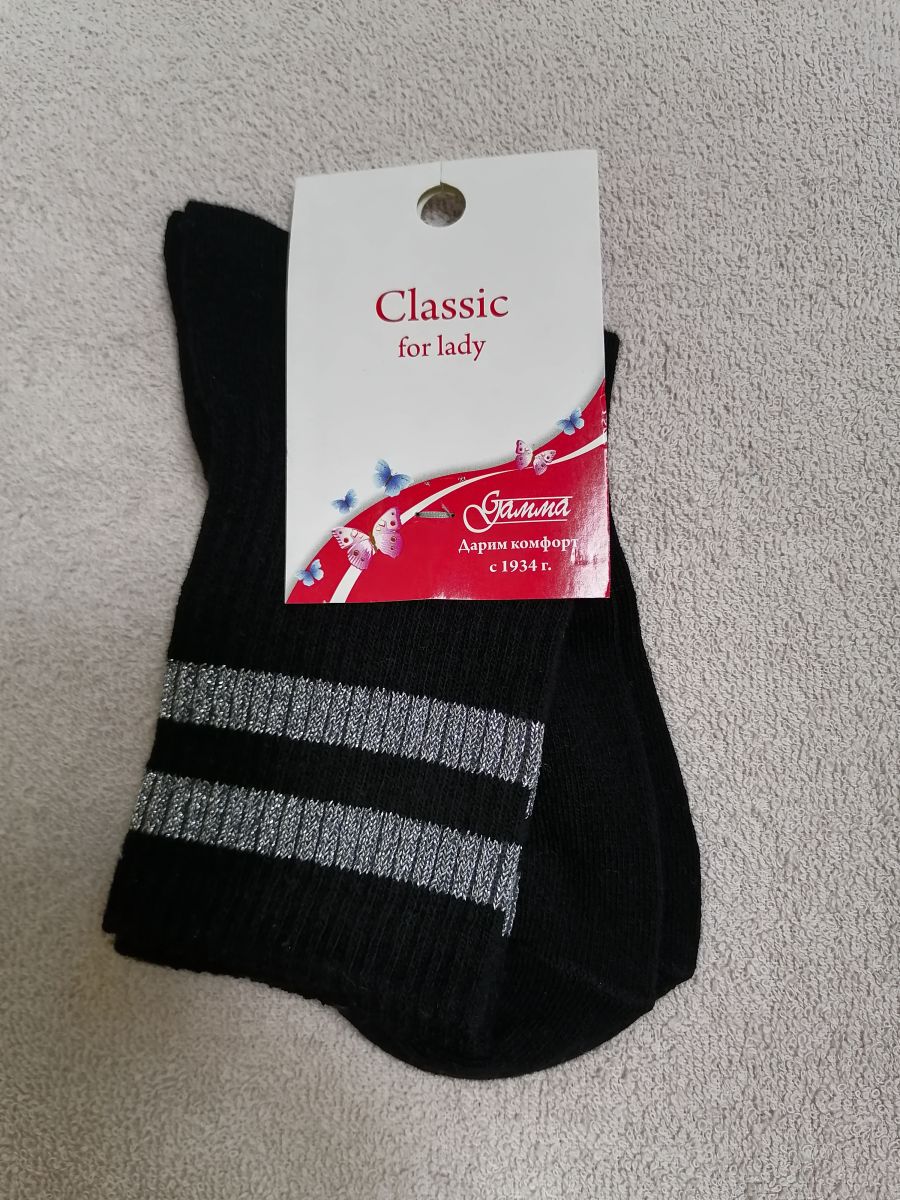 Носки женские в стиле "спорт-шик" с полосками из люрекса на борте. В упаковке - 10 пар в одном цвете.
