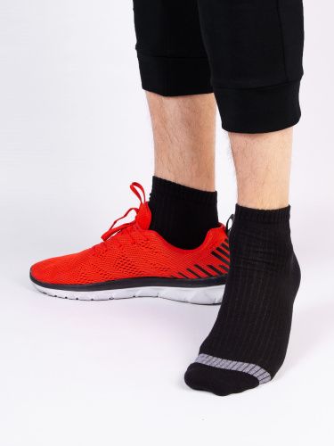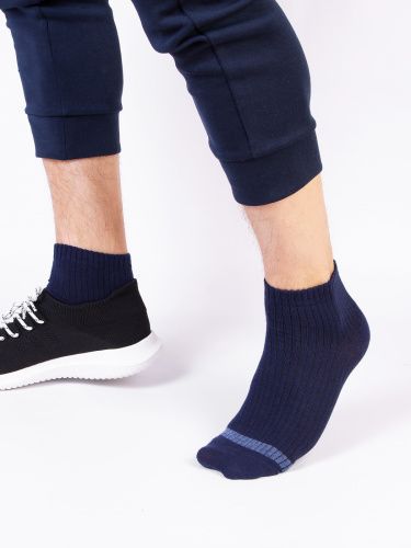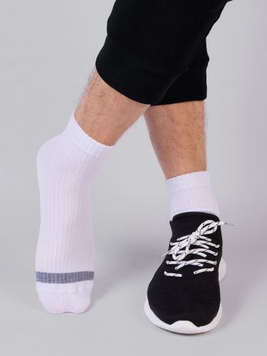Облегчённые спортивные мужские носки. Укороченный паголенок прикрывает щиколотку и за счёт упругого эластичного борта надёжно фиксирует носок на ноге. Носки с высокой воздухопроницаемостью благодаря натуральной хлопковой основе. Прочные, эластичные, устойчивые к деформации за счёт синтетических нитей в составе.