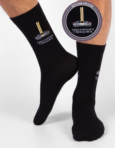 Классические мужские носки с рисунком машины. Изделие связано из натурального гребенного хлопка – такие носки комфортные, гигроскопичные и воздухопроницаемые. Модель сочетается с разными стилями и подходит для повседневной носки.