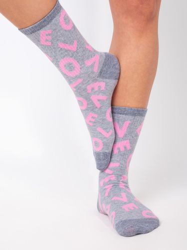 Демисезонные носки в романтичном стиле с рисунком-надписью LOVE. Изделие связано из натурального гребенного хлопка и подходит для повседневной носки. Спортивная резинка плотно облегает ногу, не стягивая и не причиняя дискомфорт. Мысок и борт изделия связаны в акцентом цвете. Носочки с очаровательным дизайном никого не оставят равнодушным.