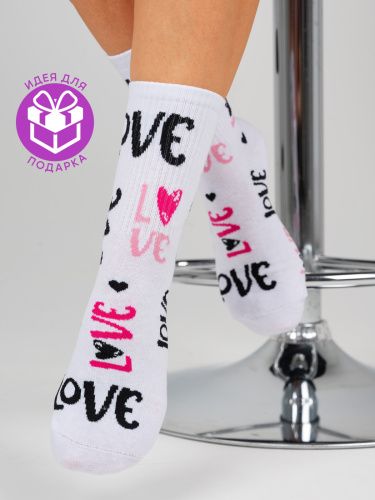 Женские демисезонные носки в романтичном стиле. Модель связана из натурального гребенного хлопка, комфортная и тактильно приятная. Спортивная резинка плотно облегает ногу, не стягивая ее и не доставляя дискомфорт во время носки. Очаровательный дизайн с рисунком-надписью LOVE и сердечками покорит самую романтичную натуру.