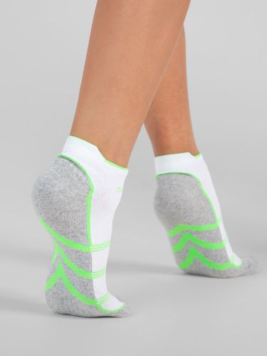 Женские укороченные носки. Спортивная модель, в составе которой натуральный хлопок, обеспечит комфорт в течение всего дня. Лаконичный дизайн с яркими полосками по всей длине дополнят ваш образ, в таких носочках очень приятно заниматься спортом или отправиться на прогулку.