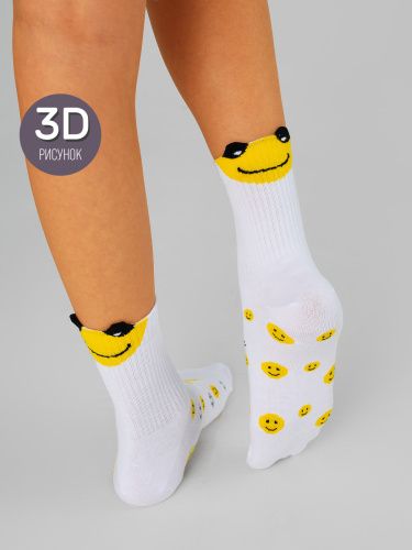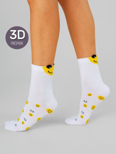 Женские носки. Мягкая модель из натурального гребенного хлопка. Озорные носки со смайликами и 3D-рисунком на паголенке станут прекрасным доплнением к вашему образу.